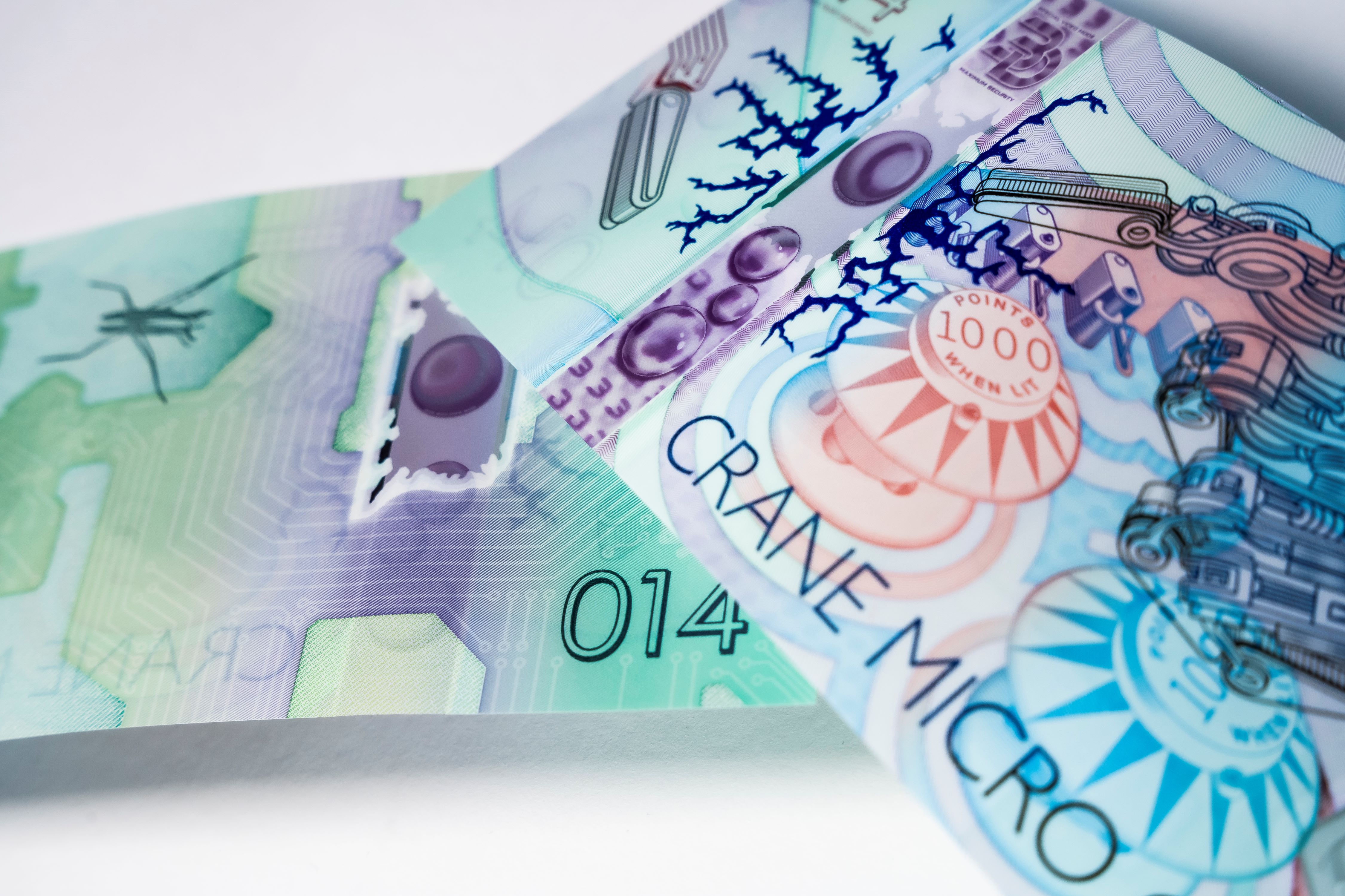 Second, it is very secure. Like our other Crane micro-optic products, MOTION SURFACE has a technological foundation that provides no easy starting point for the potential counterfeiter. Unlike holograms, the lenses and ultra-micro printing used to produce MOTION SURFACE have no counterparts in other industries.